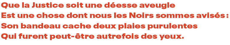 Le titre, La panthère et le fouet, attire l’attention sur deux extrêmes d’une histoire encore inachevée — l’un des plus forts mouvements de lutte des années 1960 et l’esclavage ; le sous-titre, Poèmes de notre temps, résonne toujours comme une alarme intempestive.