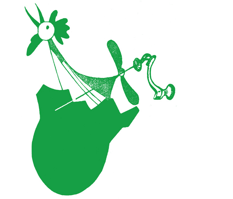 Kate Steinitz a raconté la collaboration harmonieuse qui se mit en œuvre entre Schwitters et elle-même : tandis qu’il écrivait et lisait l’histoire à haute voix, elle la dessinait elle-même au fur et à mesure, à main levée. Elle évoque son style, libéré de toute rigueur académique, qui par là même séduisait Schwitters : l’imprécision des contours, le non-respect des règles de la perspective lui permettait de rendre compte de toute la spontanéité de l’histoire >> l’histoire se passe dans un autre pays, où l’on chante le chant du fleuve Weser, où s’organisent des fêtes des chorales, où la lettre B s’associe au nom de Bismarck, et à d’autres encore, un pays qui est l’Allemagne, mais n’est pas seulement l’Allemagne, puisqu’on n’a pas encore trouvé, semble-t-il, d’oeuf de Peter Le Coq derrière aucun poêle à charbon d’Allemagne – où les poêles à charbon ont de toute façon presque tous disparu.