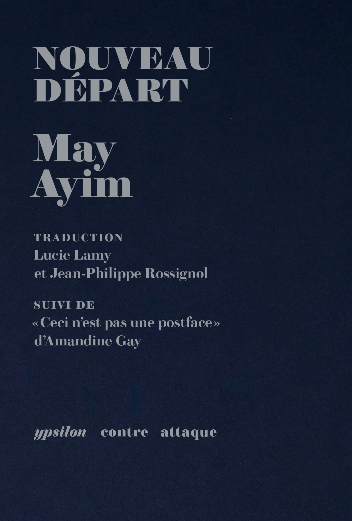 « Le pays de mon père est le Ghana, la langue de ma mère est l’allemand, je ne suis chez moi que dans mes chaussures », note May Ayim dans l’un des textes de ce recueil où elle raconte — dans une langue sans détour — une histoire qui est la sienne et qui la dépasse, marquée par le racisme qui sépare et juge, comme si cela allait de soi. Enfant adoptée, petite fille noire dans une famille blanche, elle ne s’explique pas ses joies et ses peines. Elle va partir et se construire une nouvelle vie pour comprendre ce qui arrive à une femme noire dans une société blanche. Mêlant récits intimes, convictions politiques et faits historiques, Nouveau départ retrace le parcours de May Ayim. Ses études, ses voyages, ses recherches, ses poèmes, ses performances, lui permettent de dénoncer la banalité ordinaire de la domination et de la discrimination, la violence d’un discours toujours colonial et d’affirmer sa subjectivité radicale : « Sa prose comme sa poésie sont subversives, elle est maîtresse dans l’art du rire de résistance, celui qui autorise toutes les libertés et toutes les inventions “Afro‑allemandEs” pour déjouer les pièges de la langue de l’oppresseur qui lui a tout pris, sauf son humour et son imagination. » (Amandine Gay)