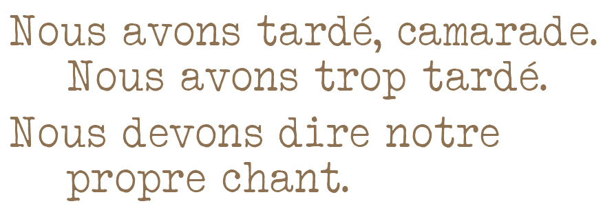 « Ces poèmes ont été écrits à Makronissos, d’août à septembre 1949, au camp D de déportés politiques, avant que nous soyons transférés au Bataillon B, avant même de vivre toute l’horreur de Makronissos. Ces poèmes sont restés enterrés sur place dans des bouteilles scellées, et déterrés en juillet 1950. » Cet avertissement a été inséré par Ritsos dans la première édition de ces poèmes en 1957.